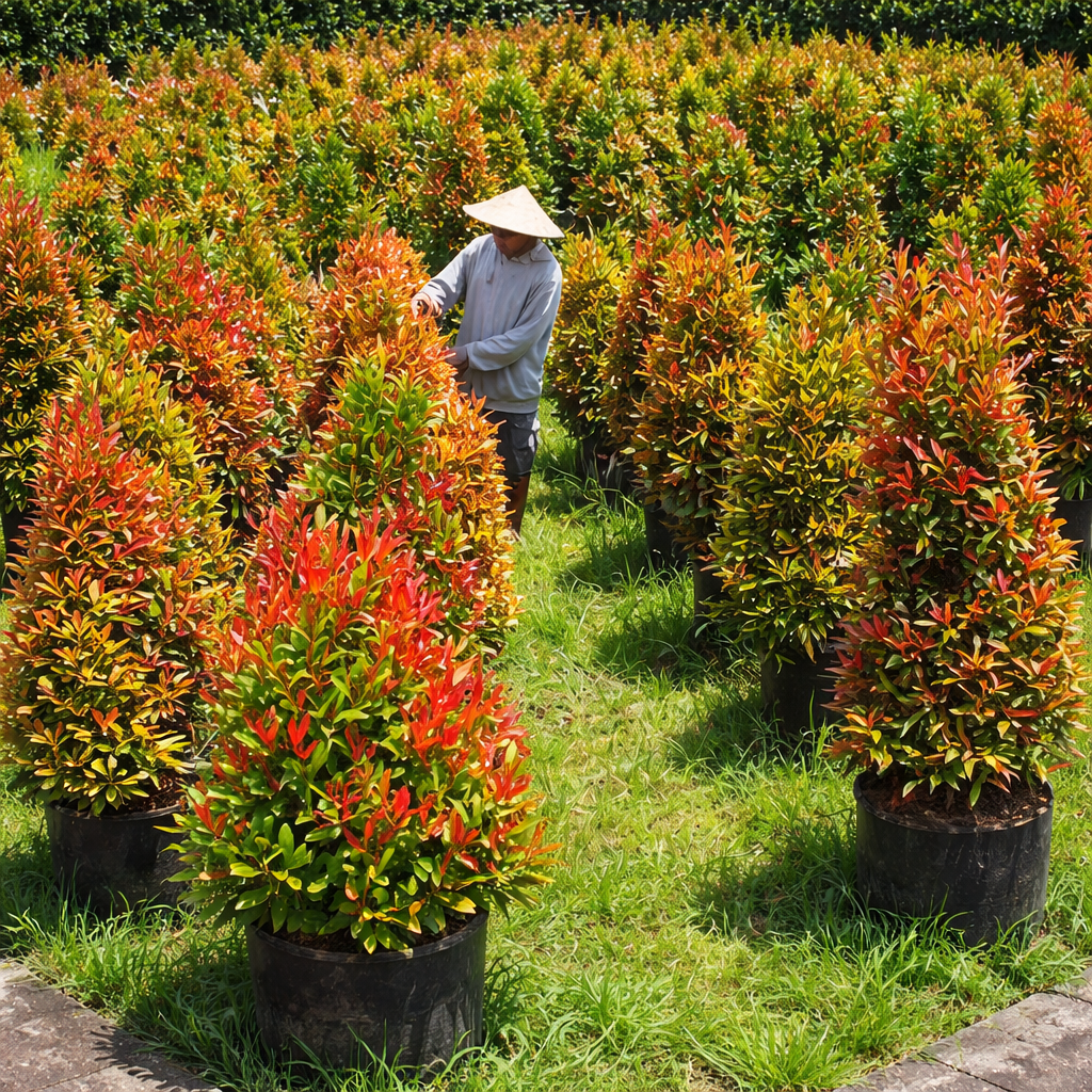 Pohon Pucuk Merah adalah tanaman hias dengan daun muda berwarna merah cerah yang memberi kesan segar dan rapi pada taman.