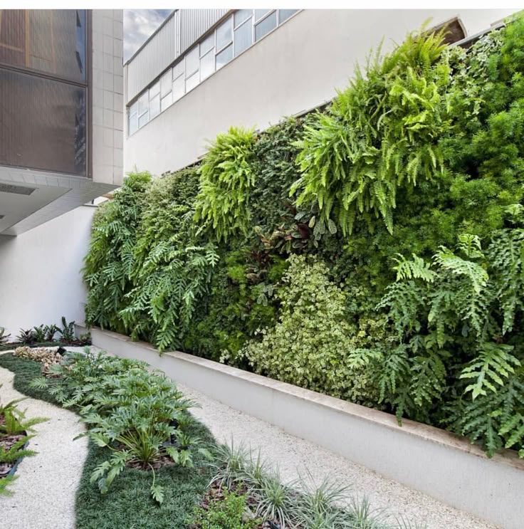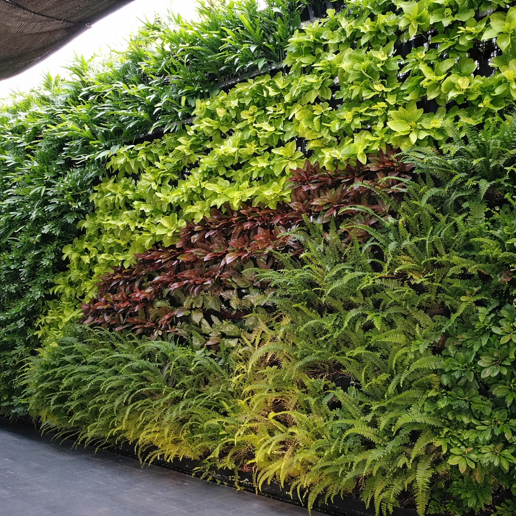 Taman vertikal yang memanfaatkan dinding sebagai media tanam. Cocok untuk lahan sempit, menghadirkan nuansa hijau yang estetik dan hemat ruang.