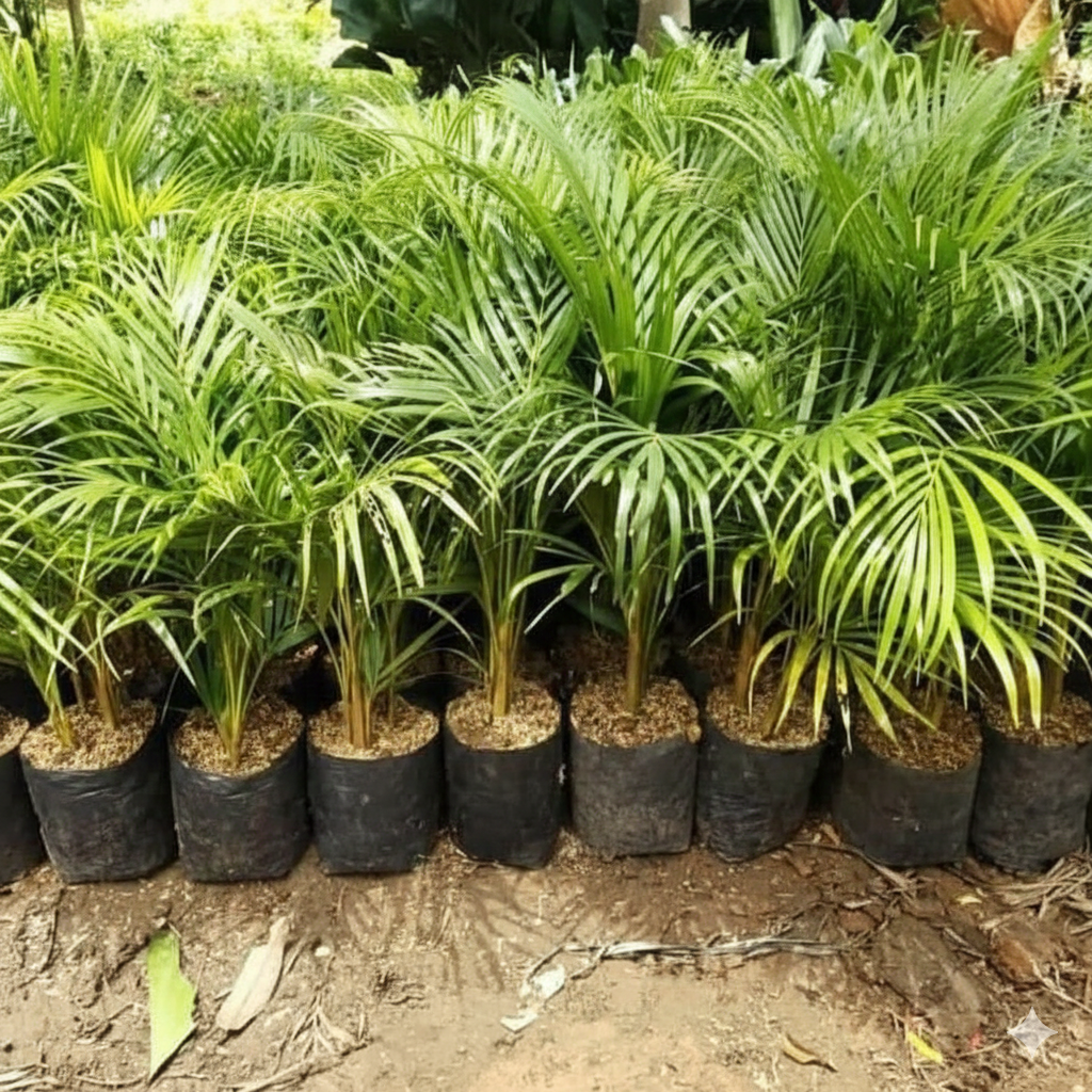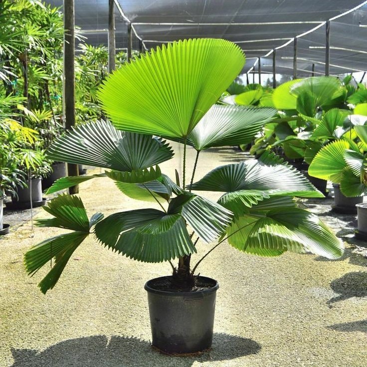 Palem kipas memiliki daun lebar berbentuk kipas yang unik dan elegan. Tanaman ini tahan panas, perawatan mudah, dan cocok untuk menghadirkan kesan tropis pada taman rumah maupun area komersial