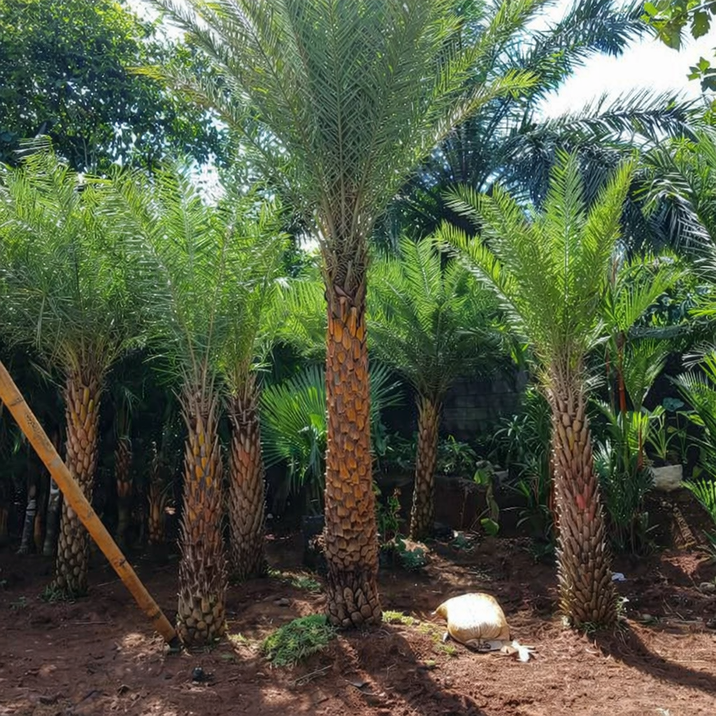 Palem Kenari merupakan tanaman hias palem dengan batang tinggi dan daun menjuntai yang memberikan kesan tropis, rapi, dan elegan pada taman.