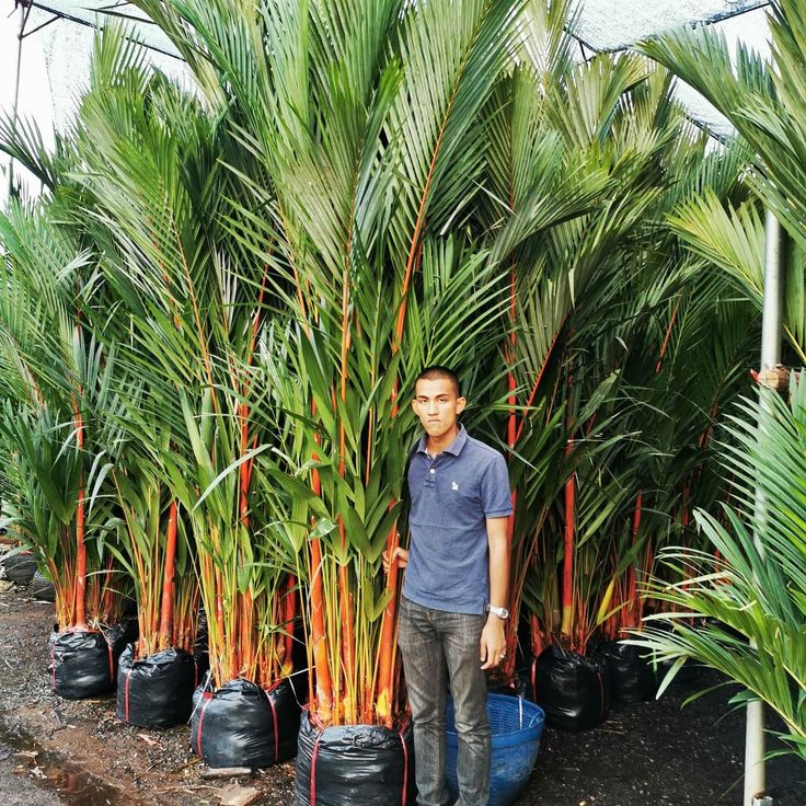 Palem Merah merupakan tanaman hias eksotis dengan batang dan pelepah berwarna kemerahan yang mempercantik tampilan taman.